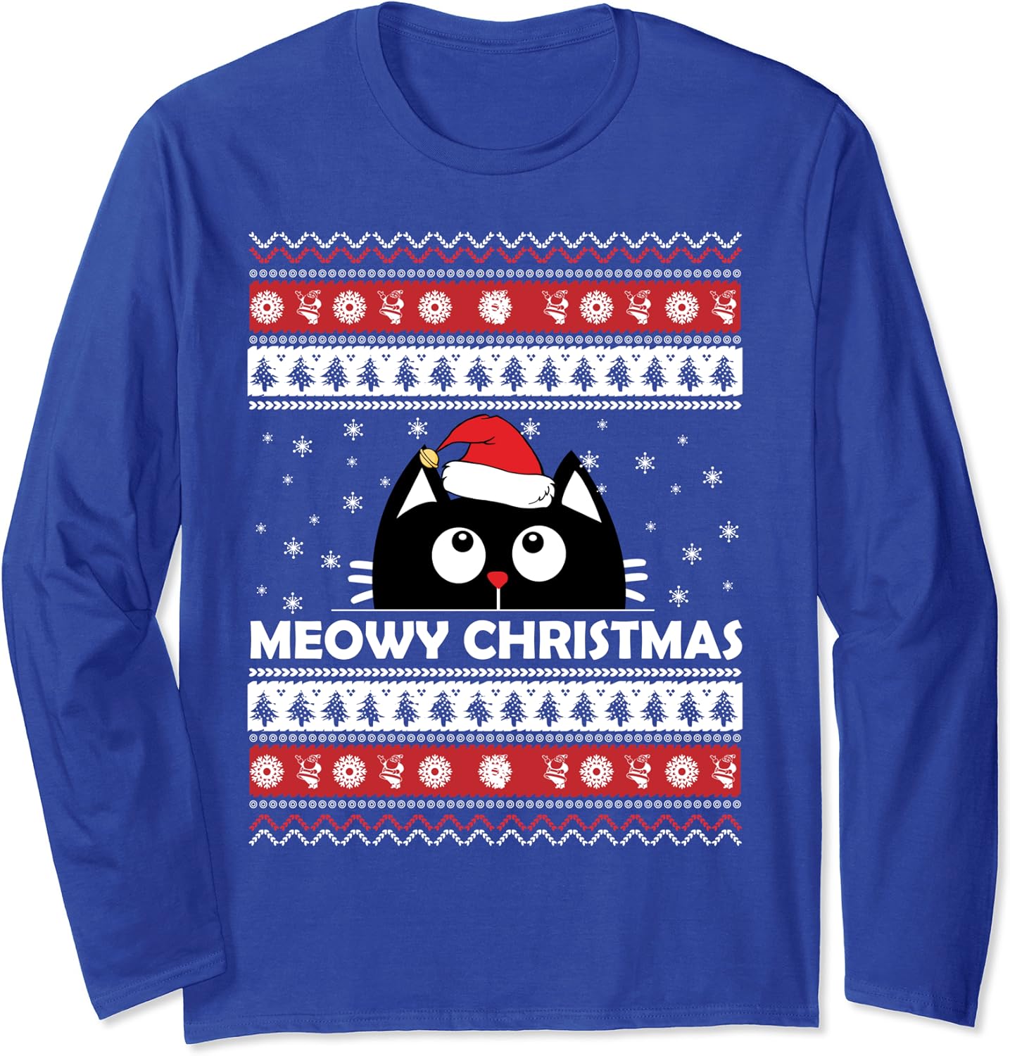 Amazon Com Meowy Cat Ugly Christmas Sweater Long Sleeve T Shirt Clothing